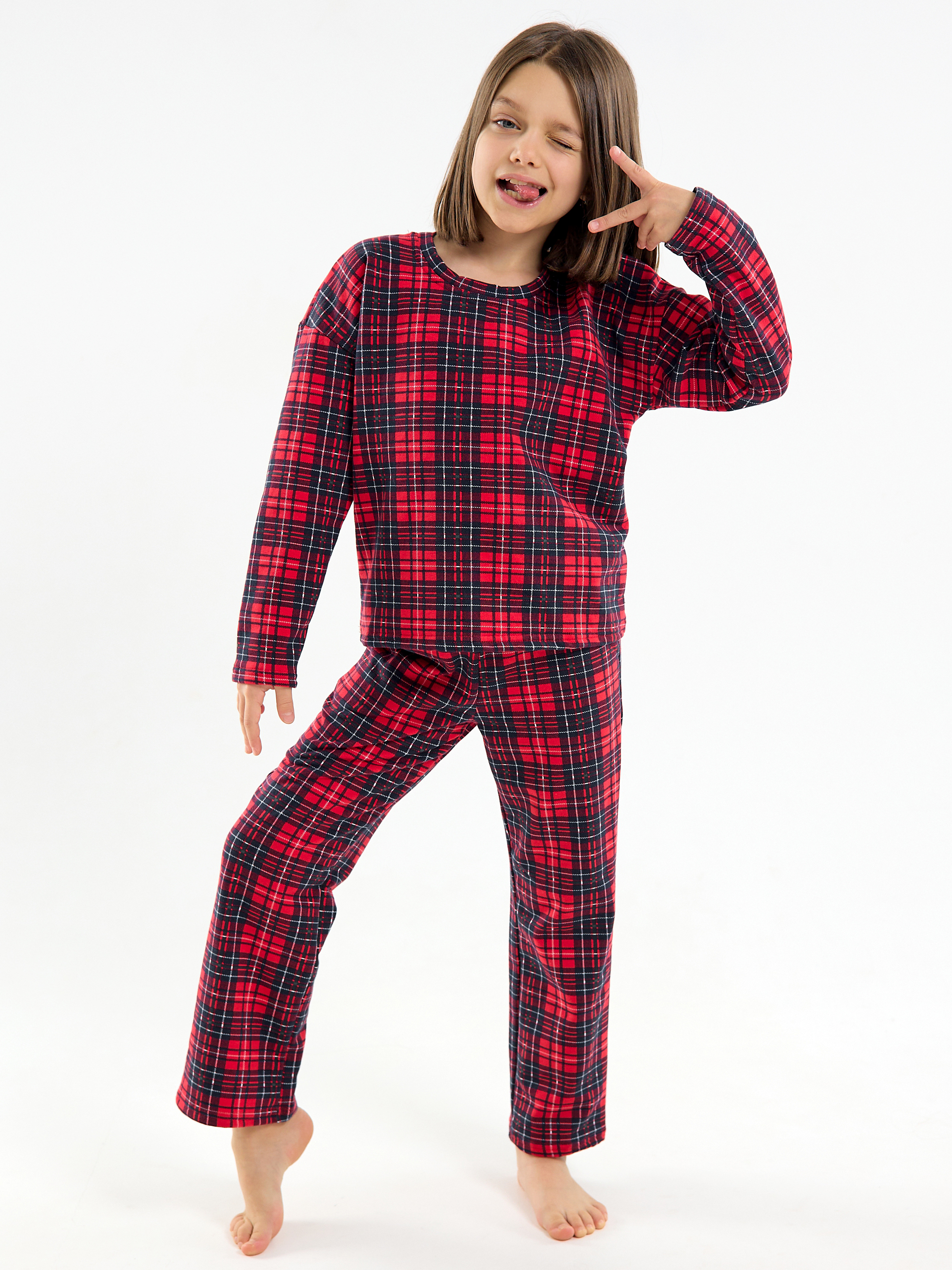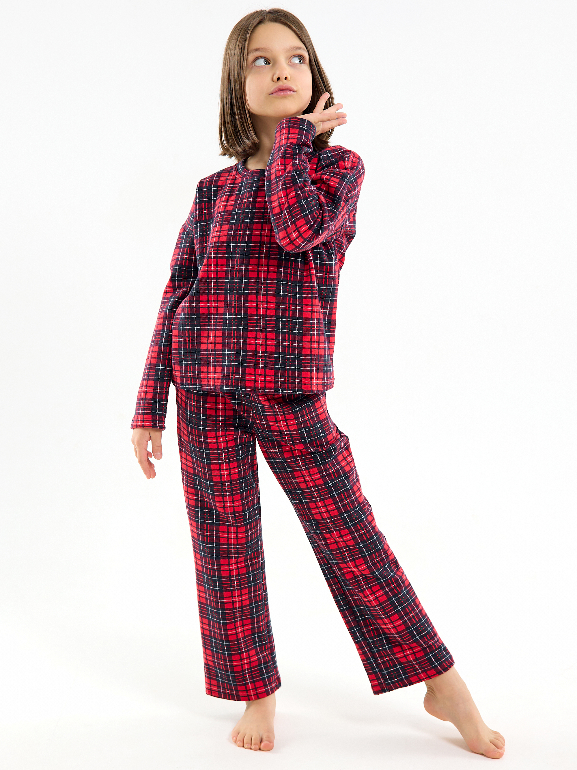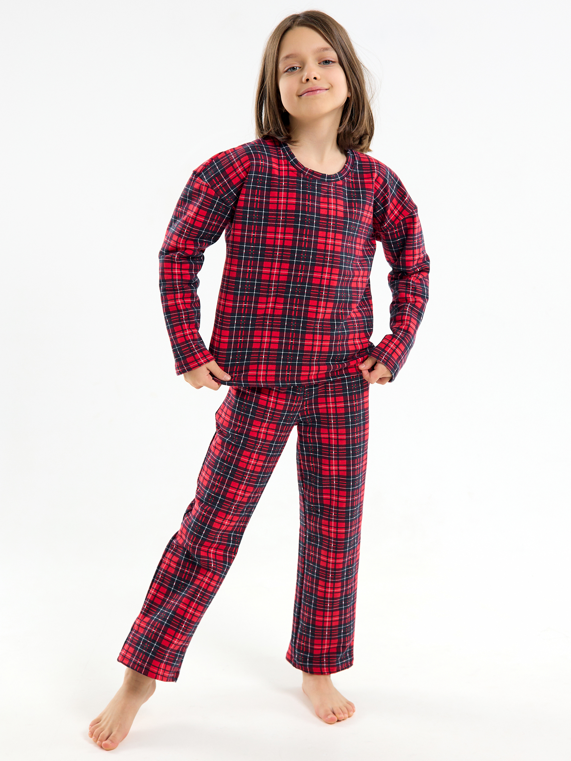 Милая яркая расцветка в трендовую красную клетку и продуманная посадка делают костюм универсальным для детей разных возрастов: малышей, подростков, девочек и мальчиков. Подходит для домашней одежды, садика, семейных праздников, новогодней ночи, а также для создания красивых семейных луков на фотосессии. Пижама не стесняет движений благодаря длинным рукавам и штанам, а кофта из футера с начесом дарит дополнительный комфорт даже самым маленьким.