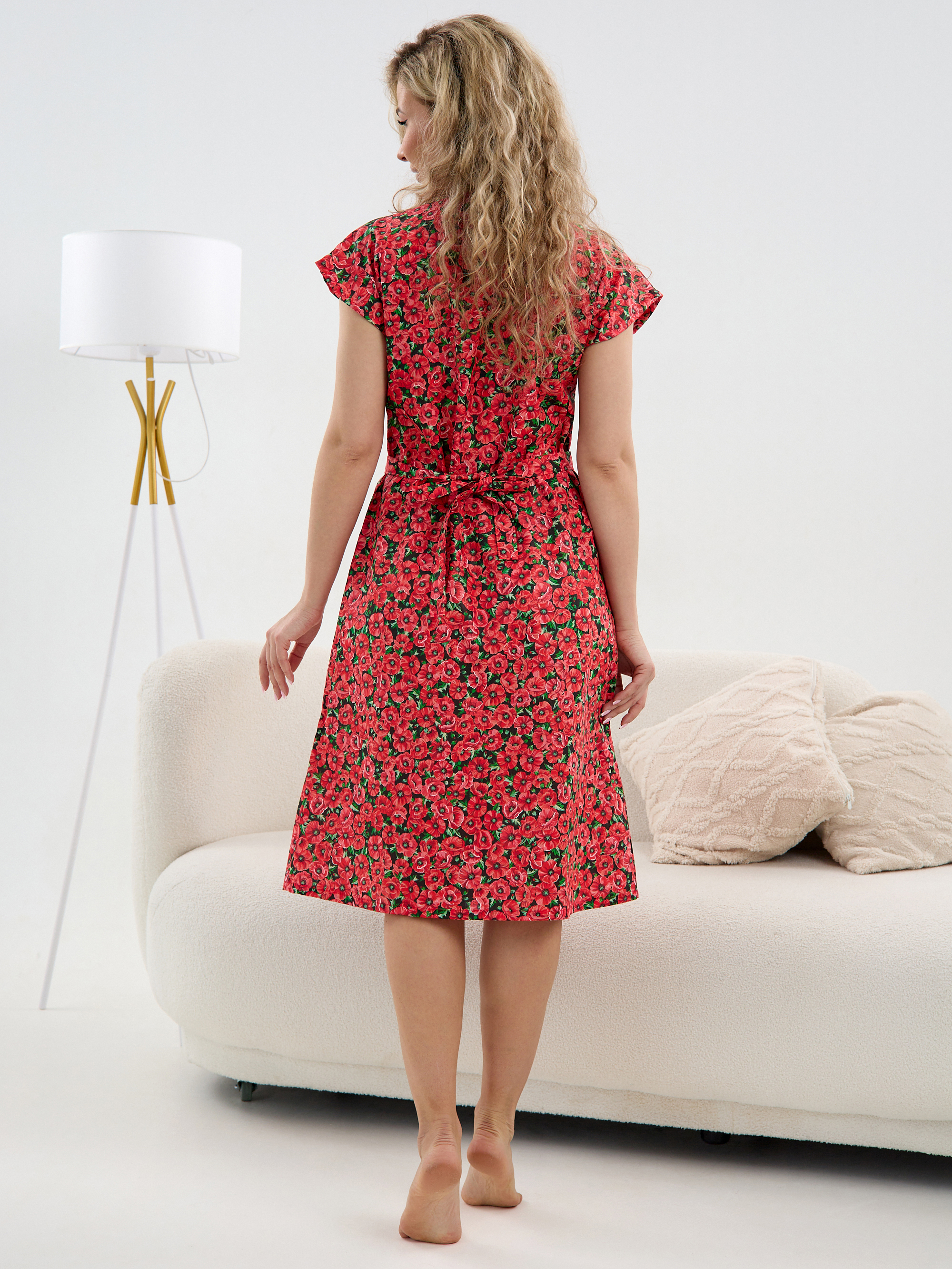 Халат домашний бязевый от компании Лето-Текс, выполнен из натурального хлопчатобумажного материала из бязи - 100% хлопок. Ткань бязь изначально жесткая, после стирки становится мягче. Халат женский на запах с накладными карманами и спущенным плечом. Халат запашной ниже колена, рост модели на фото 165 см., а ростовка халата 170см. Достоинствами такого халата для дома являются его экологичность и безопасность, он не вызывает аллергии, кожа в нем дышит, а влага впитывается. Домашний халатик отлично подойдет для дома, надеть с утра или после ванны, не сковывает движений и отлично сидит по фигуре и подчеркивает талию. Халат летний женский длинный с коротким рукавом подойдет для беременных роддома, для кормления грудью, для кормящих мам. Халат больших размеров хороший подарок на день рождения 8 марта для мамы и бабушки. Халат рабочий отличный вариант для дачи и в качестве униформы.
