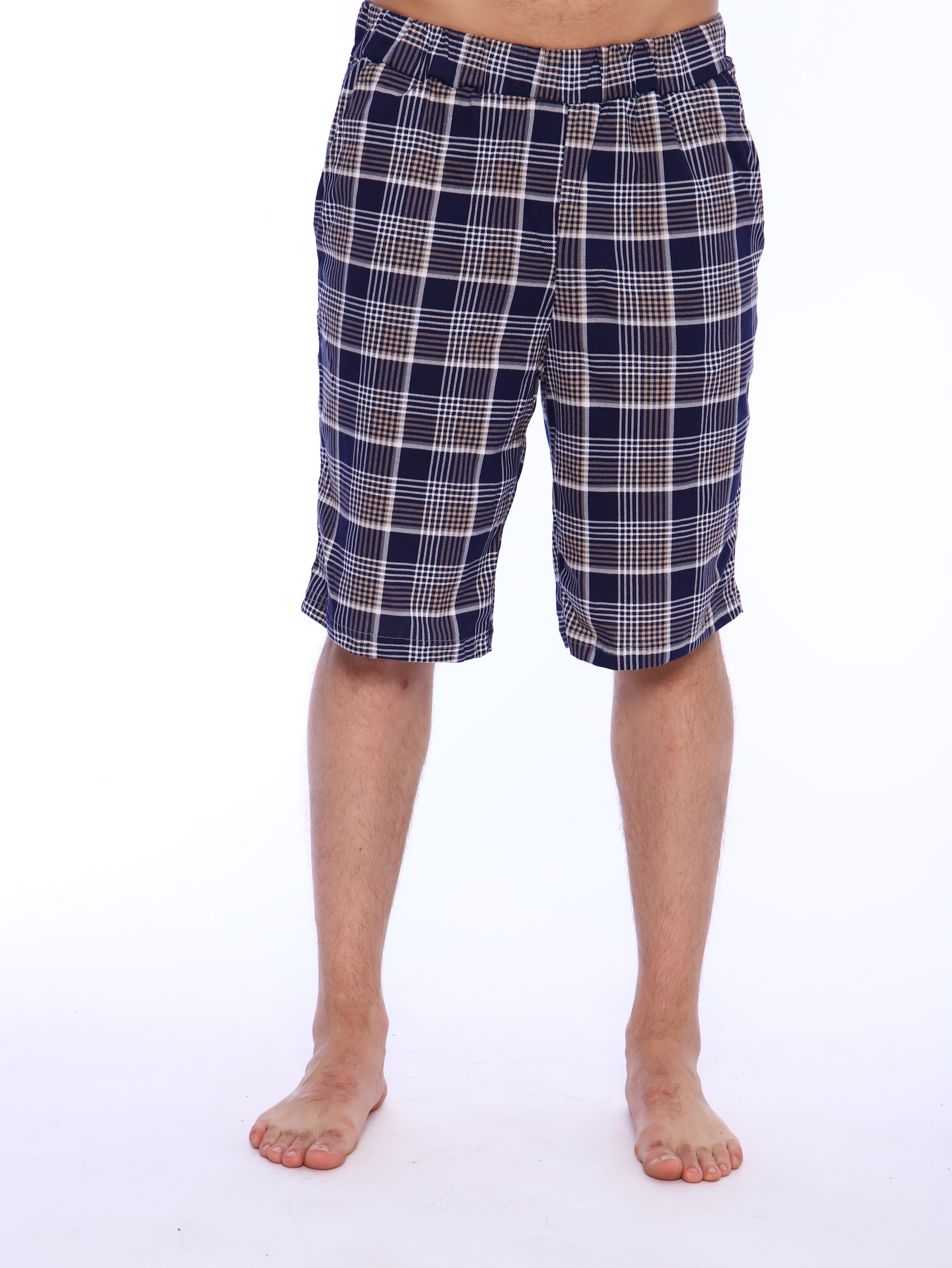 Мужские хлопковые домашние шорты с карманами по бокам.