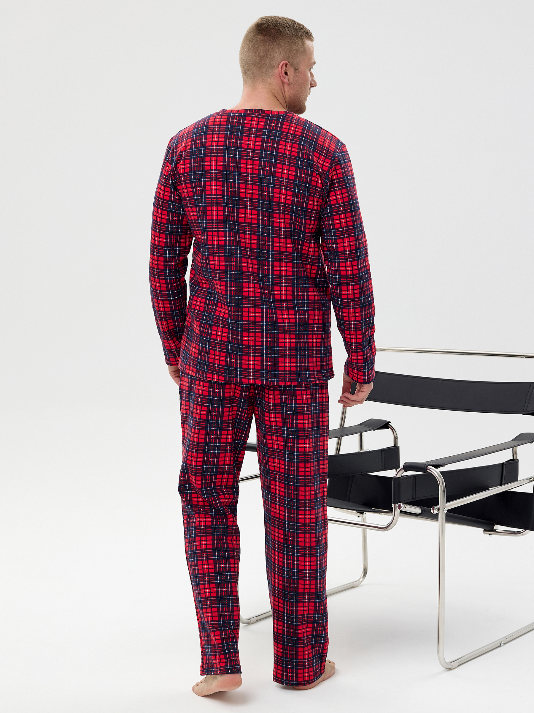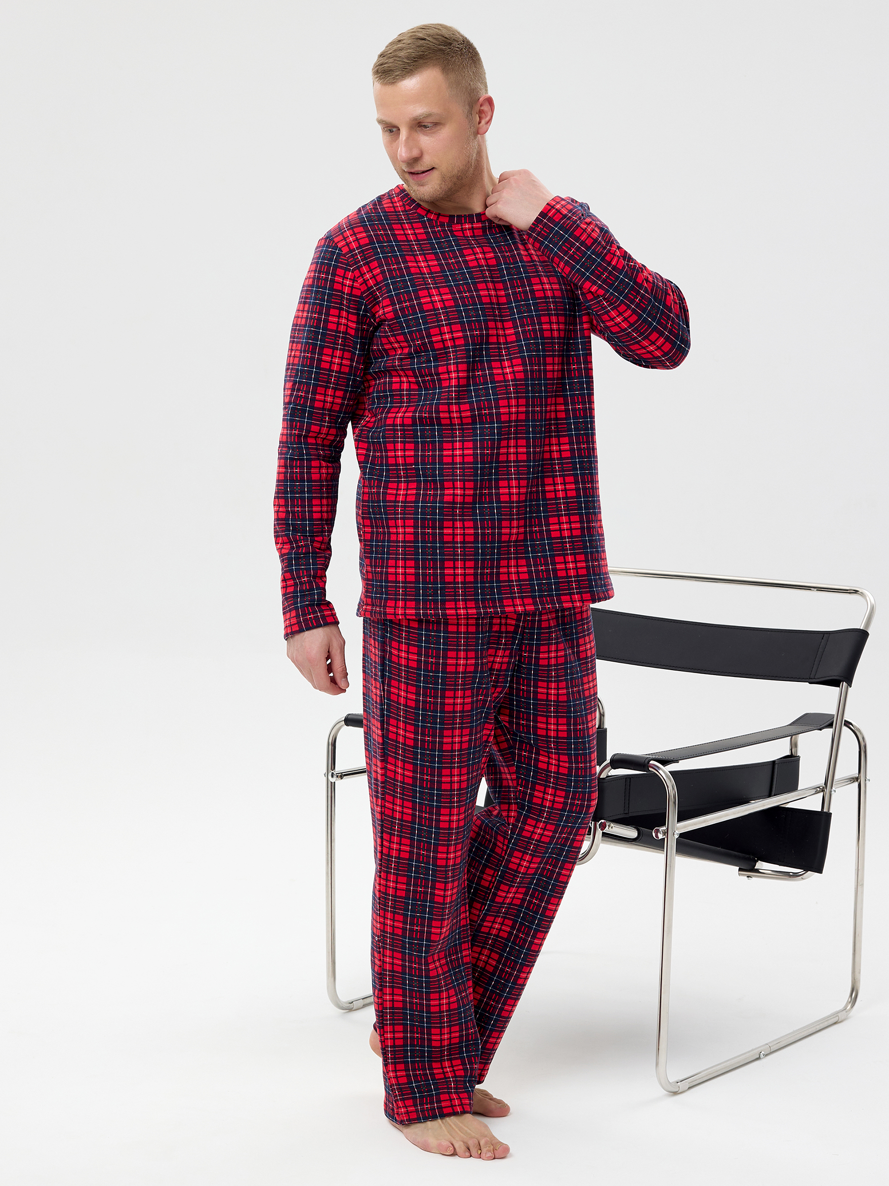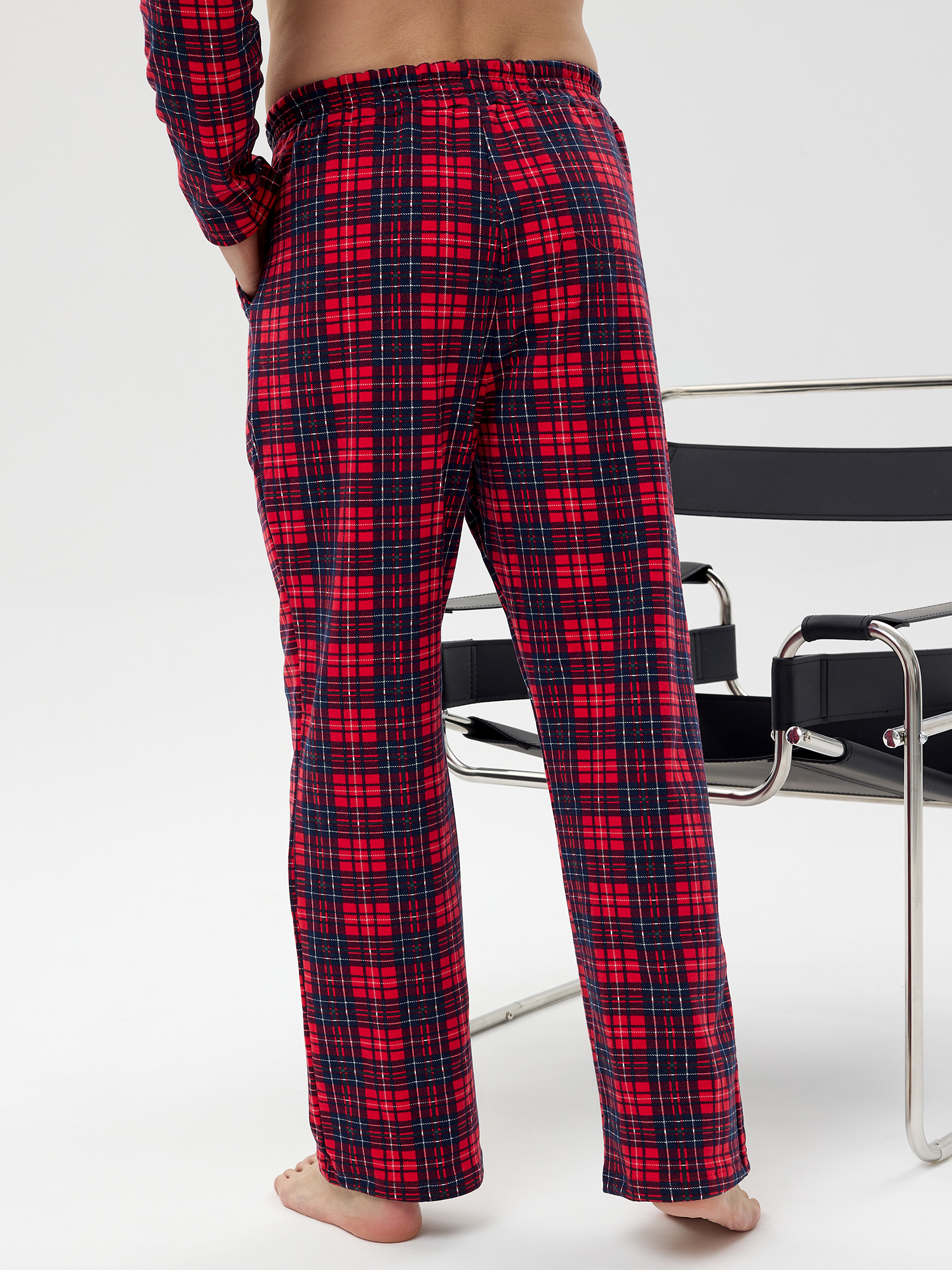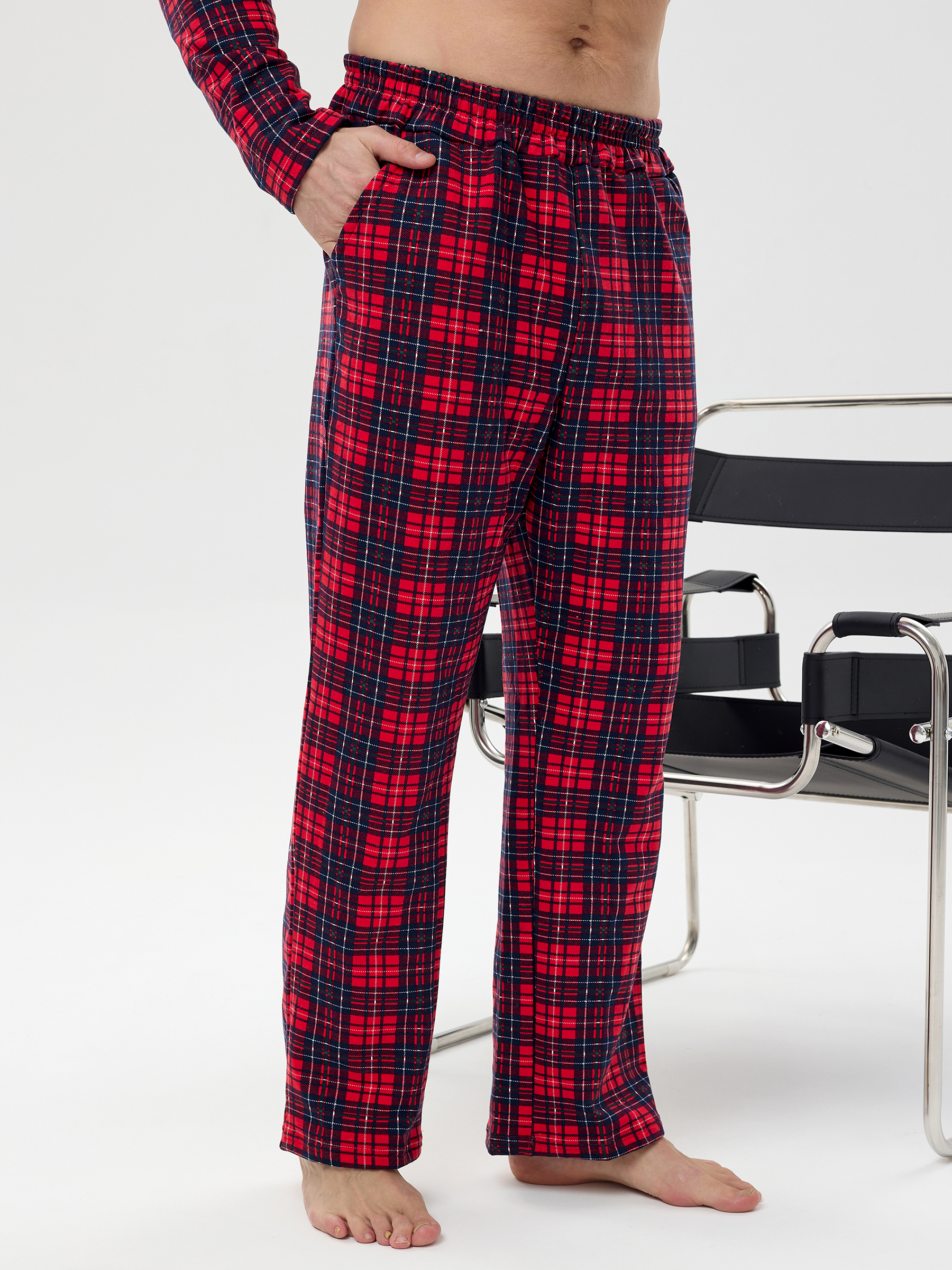Мужская пижама со штанами теплая. Этот комплект для дома с брюками включает в себя свободные штаны прямого кроя и кофту с длинным рукавом. Изготовленный из высококачественного мягкого и комфортного материала футера двухнитки с мягким начесом приятным к телу, он идеально подойдет для домашнего отдыха или сна. Костюм домашний имеет стильный дизайн с принтом в красную клетку.