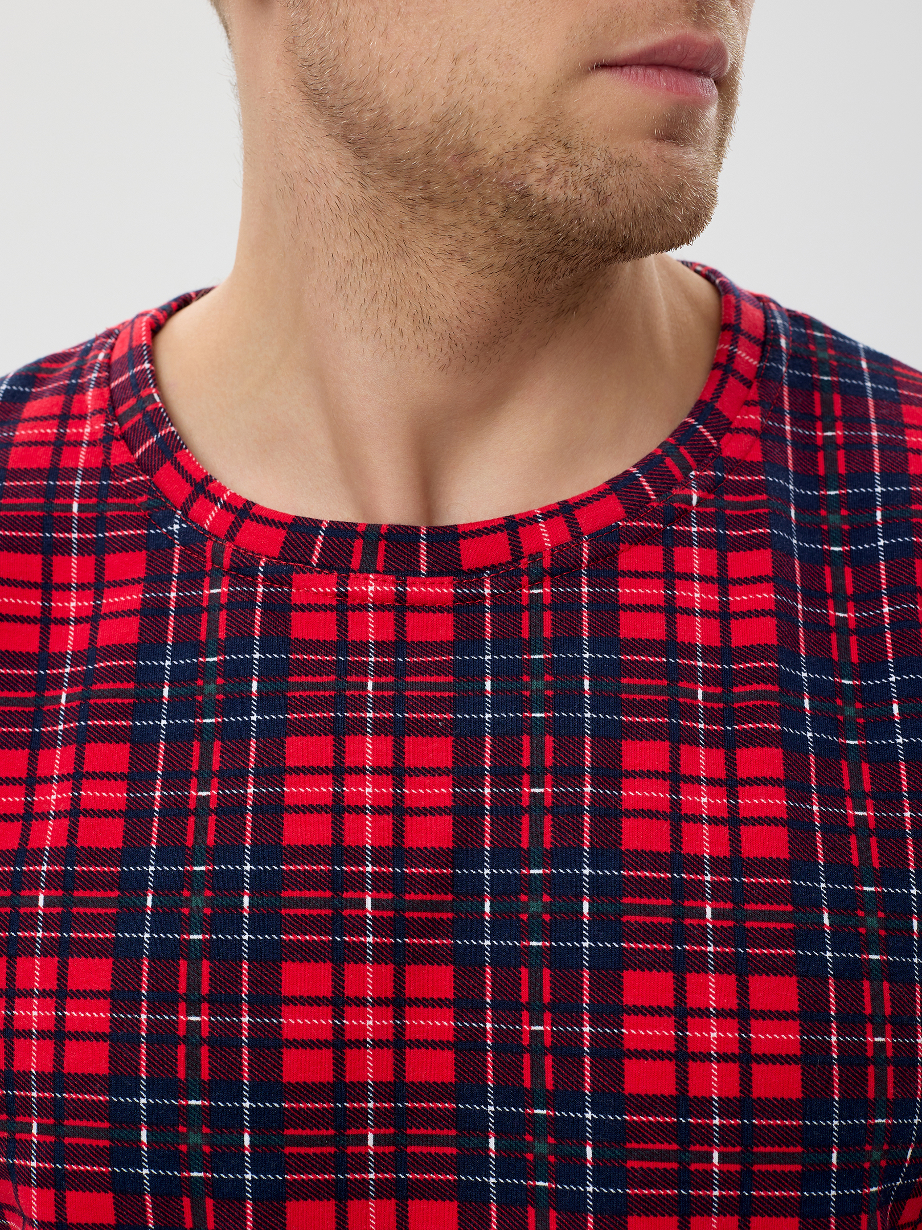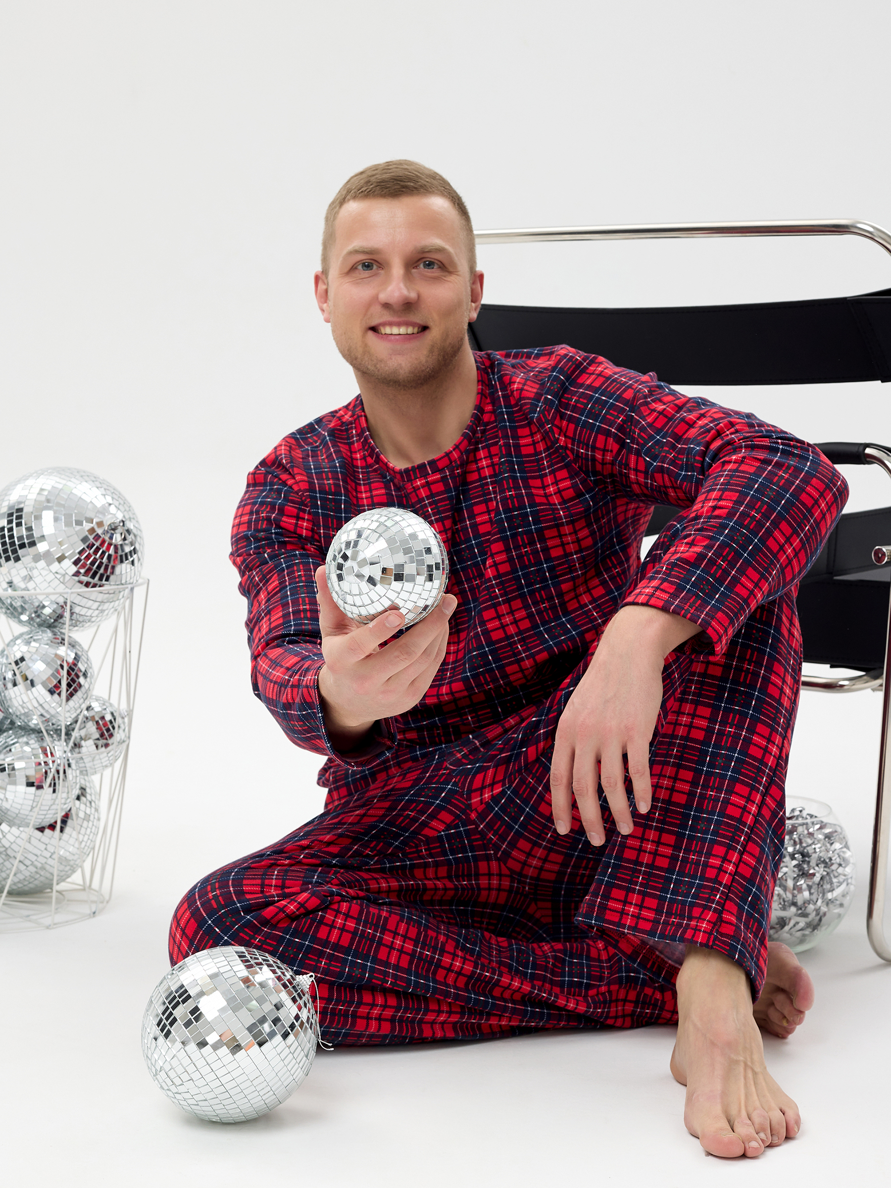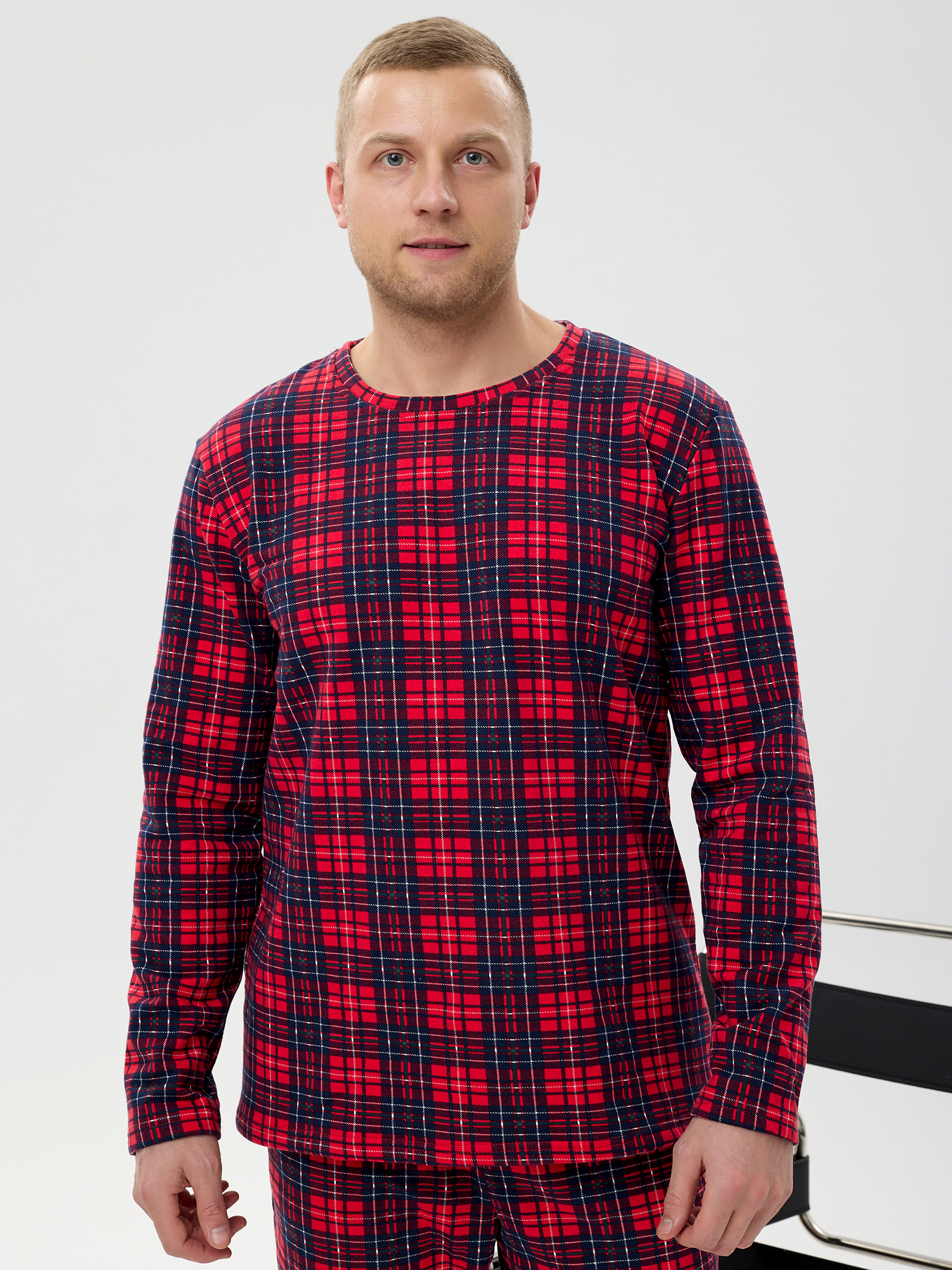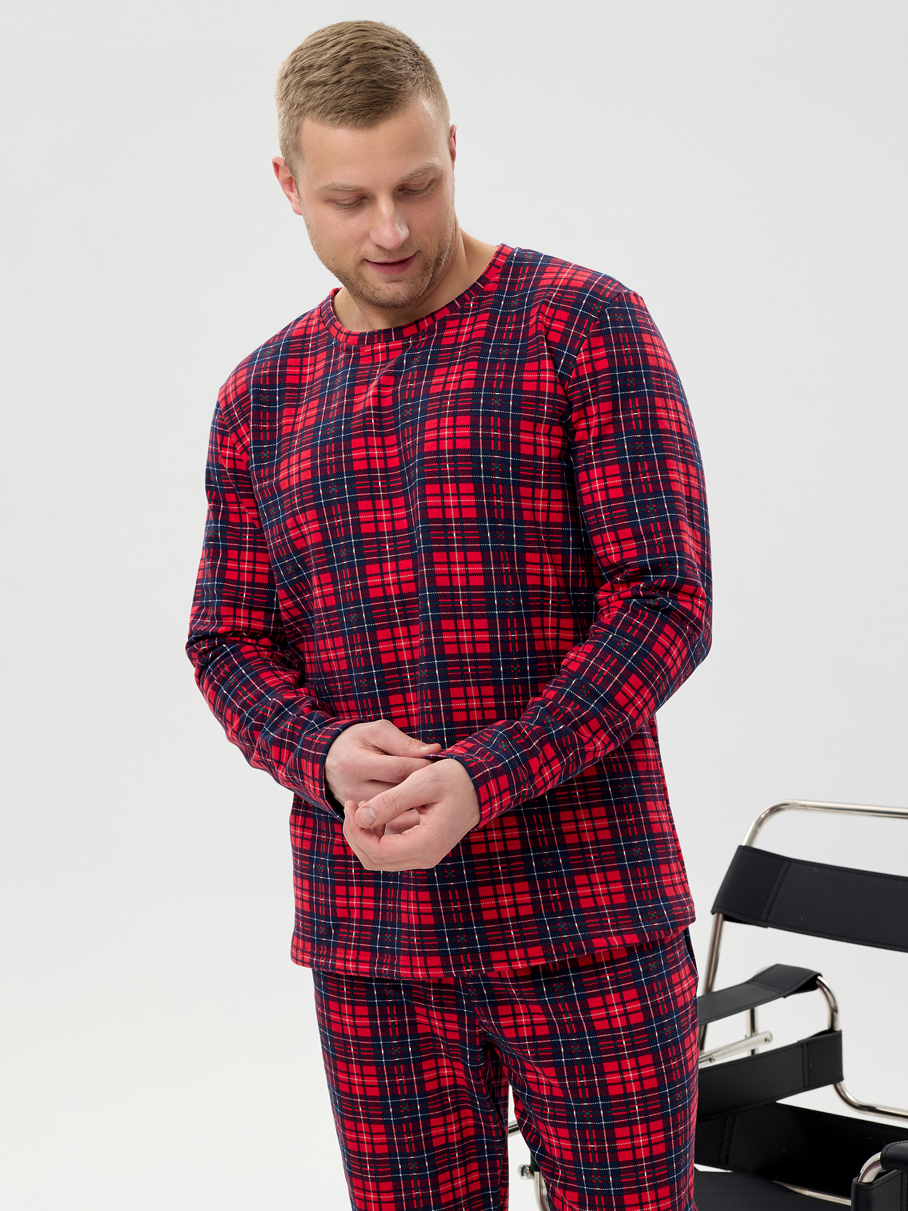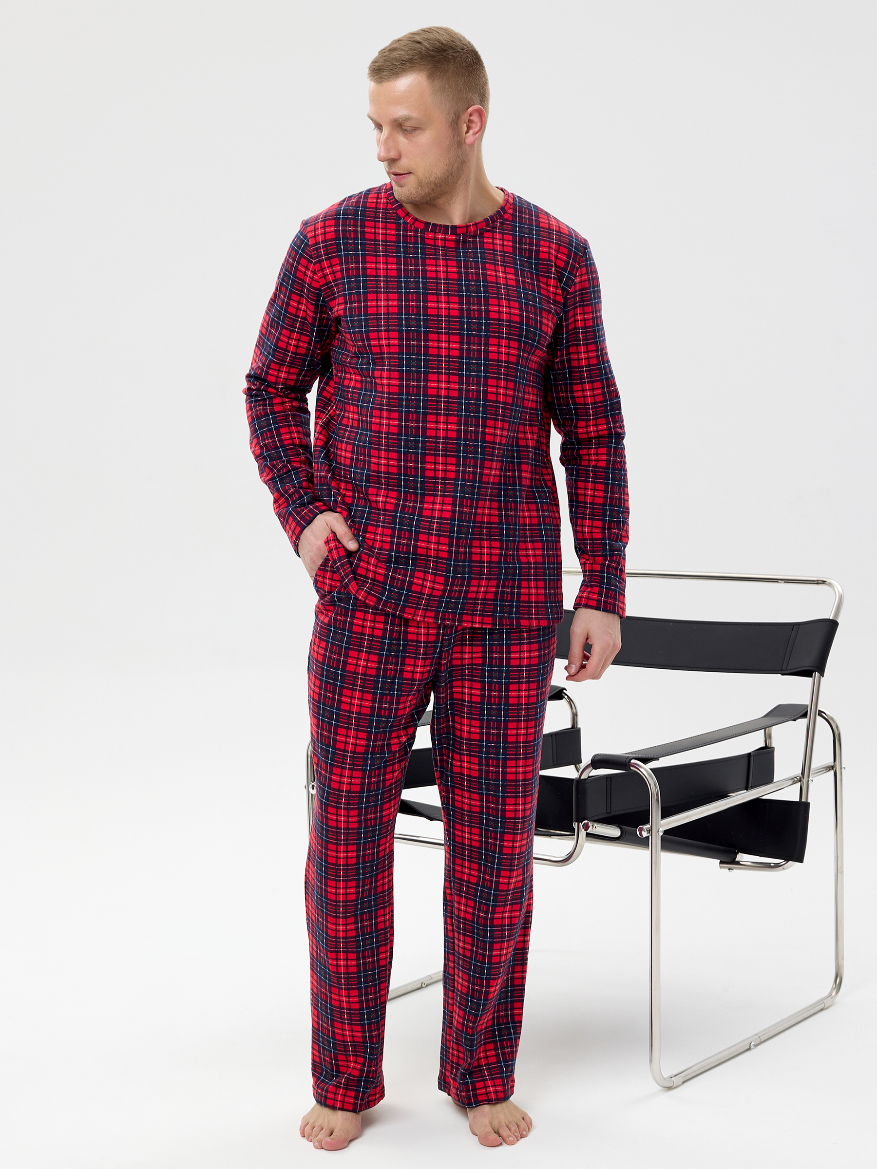 Мужская пижама со штанами теплая. Этот комплект для дома с брюками включает в себя свободные штаны прямого кроя и кофту с длинным рукавом. Изготовленный из высококачественного мягкого и комфортного материала футера двухнитки с мягким начесом приятным к телу, он идеально подойдет для домашнего отдыха или сна. Костюм домашний имеет стильный дизайн с принтом в красную клетку.