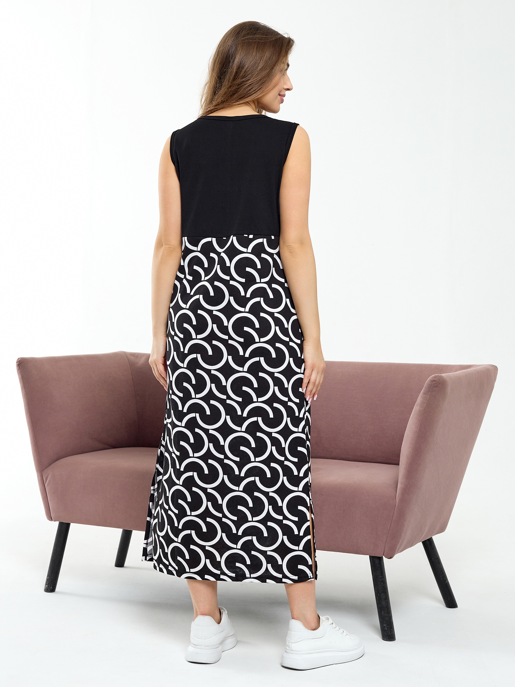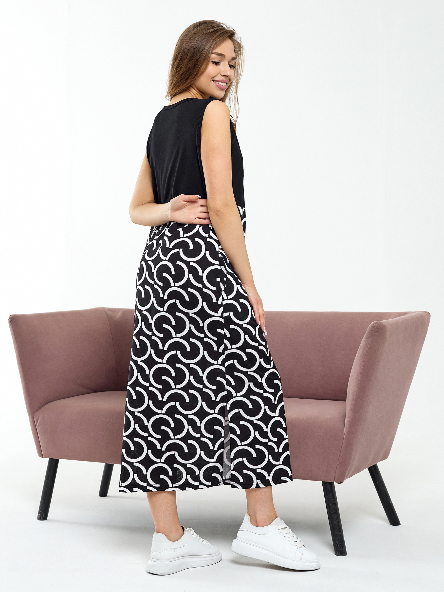 Сарафан домашний трикотажный с v- образным вырезом, благодаря оригинальному принту, скрадывает все недостатки фигуры.